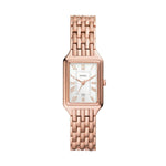 The Fossil Raquel Three-Hand Date Rose Gold-Tone Stainless Steel Watch is a harmonious blend of vintage charm and contemporary functionality. It features a sleek rectangular case and a warm rose gold-tone stainless steel finish, exuding an air of timeless sophistication. This timepiece is designed with both fashion and practicality in mind.