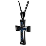 Brilliance Fine Jewelry TS15186 Mens Two-Tone Black Stainless Steel Carbon Fiber Cross Pendant 24 Inches