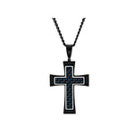 Men’s two-tone black stainless steel carbon fiber cross pendant – 24 inches; mens pendant