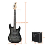 Glarry STEGuitar216 39in Full Size Beginner Electric Guitar Starter Kit w/Case, 20W Amp, Black