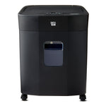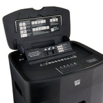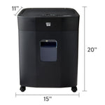 The Pen+Gear 120-Sheet Auto Feed Micro-Cut Paper Shredder is designed to protect your privacy while maximizing efficiency. Featuring dual shredding modes, it allows automatic feeding of up to 120 sheets or manual shredding of up to 12 sheets, accommodating both large and small shredding tasks. Its high-performance motor and durable blades shred documents into micro-cut particles measuring 5/32" x 15/32" (4 x 12 mm), ensuring superior security for sensitive information. Beyond paper, it can shred staples, paper clips, and credit cards, adding versatility. The shredder supports continuous operation for up to 30 minutes in auto feed mode and 10 minutes in manual mode before requiring a cool down period. A spacious 6-gallon pull-out bin simplifies waste disposal, while 360-degree universal wheels provide easy maneuverability across various environments such as homes or offices. This heavy-duty shredder combines security, capacity, and convenience for effective document management.