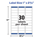 Avery Address Labels 05136 are designed to provide superior performance and convenience for both personal and professional use. These white rectangular labels measure 1 inch by 2-5/8 inches and come in a bulk pack of 3,000 sheets, making them ideal for high-volume mailing and labeling tasks. Engineered with permanent adhesive, these labels ensure a strong bond to various surfaces including cardboard, envelopes, and paper without lifting or curling over time. The labels are optimized specifically for laser printers to deliver crisp text and vivid colors that enhance the appearance of your mailings or products. Avery's proprietary Sure Feed technology guarantees smooth feeding through your printer, reducing jams and smudges that can disrupt printing jobs.
