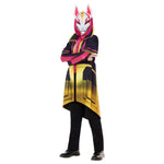 Step into the world of Fortnite with the Drift Halloween costume designed specifically for boys size large (10/12) by InSpirit Designs. This costume includes a vibrant gold, black, and pink coat featuring an attached hoodie that adds to the character's signature look. The included kitsune mask completes the ensemble, providing an authentic representation of the Fortnite Drift character. Crafted from 100% polyester, the costume ensures comfort and ease of movement during play or festivities. The pull-on style closure and long sleeves make it easy to wear while maintaining a snug fit. Ideal for Halloween celebrations or gaming-themed parties, this outfit encourages imaginative play and lets your child showcase their favorite game persona. Please note that shoes, pants, and accessories like the Fortnite pickaxe are sold separately. Spot clean recommended to maintain quality and appearance.