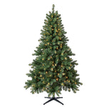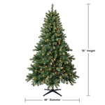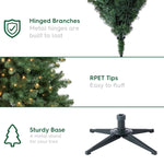 Elevate your holiday decorating with the Holiday Time 6.5-Foot Windham Spruce Pre-Lit Artificial Christmas Tree, designed to bring festive warmth and charm to your home. This tree stands 6.5 feet tall with a 48-inch diameter, providing a full and traditional profile that fits perfectly in most living spaces. Featuring 936 branch tips made from eco-friendly rPET recycled materials, it delivers a realistic spruce look while minimizing environmental impact. The pre-strung 300 warm white LED lights emit a gentle, constant glow that enhances the holiday atmosphere without overwhelming brightness. Its hinged branches and simple section connections make setup and takedown effortless, saving you time during the busy season. The included sturdy metal stand ensures reliable stability, while the extra sturdy top branch is designed to securely hold your preferred tree topper. Made with flame-retardant materials for safe indoor use, this artificial Christmas tree combines durability, convenience, and classic style to suit both traditional and contemporary holiday themes.