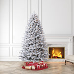 - Bring home this elegant pre-lit flocked Christmas tree today and create a warm, festive atmosphere that will delight your family and guests all season long.
