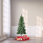 The Holiday Time 6-Foot Wesley Pine Green Artificial Christmas Tree brings classic holiday spirit into your home with its full and natural look. Boasting 378 lush branch tips spread across a 32-inch diameter, this tree fits comfortably in most rooms while providing ample space for decorations. The hinged, pre-attached branches simplify assembly and allow you to easily shape the tree to achieve your desired style. Its unlit design offers complete freedom to personalize with your own lights, garlands, and ornaments. A strong top branch is designed to securely hold a star, angel, or other favorite tree topper. The sturdy metal stand ensures stability throughout the season, preventing tipping or wobbling. Constructed from durable PVC, iron wire, and steel materials with flame-retardant properties, this artificial pine tree delivers both beauty and safety. Perfect as a festive centerpiece, it promises years of holiday enjoyment without the mess of real needles or maintenance.