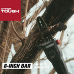 The Hyper Tough 20V Max Cordless Pole Saw is engineered to help homeowners maintain their property by trimming and pruning hard-to-reach branches safely and efficiently. Its lightweight design at just 7.3 lbs makes it ideal for use in situations where ladders are unsafe or impractical. The adjustable telescoping shaft extends to accommodate various heights, providing excellent reach and flexibility for diverse trimming tasks. Equipped with an 8-inch bar and a tool-less chain tensioning system, this pole saw allows for quick and convenient adjustments to optimize cutting performance. The automatic oiler enhances maintenance by offering clear visibility of oil levels, ensuring the chain remains lubricated during operation. Powered by a 20V max 2.0Ah lithium-ion battery, which is compatible with all Hyper Tough 20V batteries, this cordless pole saw includes both the battery and charger to deliver consistent power throughout your project. Its ergonomic design and portability make it a practical choice for homeowners seeking an effective solution for tree care and outdoor maintenance.