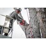 The REDLINK PLUS Intelligence enables full-circle communication between the tool and battery, providing you with unmatched levels of performance, protection, and productivity. The M18 REDLITHIUM HIGH OUTPUT XC8.0 Battery (not included) provides efficient power delivery giving you more runtime in application with the ability to make 150 cuts per charge in 4" x4" Cedar. The saw has a professionally demanded feature set including an easy access chain tensioner, automatic oiler, metal bucking spikes, onboard scrench storage, lanyard loop, and climbing scabbard. The M18 FUEL 12" Top Handle Chainsaw is compatible with 250+ solutions on the M18 system.