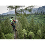 - Climbing scabbard covers bucking spikes, locks on to saw, and has tie off points for aerial applications