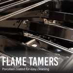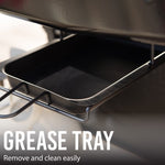 - A removable grease tray allows drippings to be funneled away from the burners and reduces your risk of flare-ups.