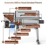 KingChii Wood Pellet Grill & Smoker 456sq.in 8-in-1 Multifunctional BBQ Grill with Automatic temperature control for Outdoor Cooking, Foldable Table Legs.
