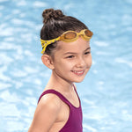 Bestway Child Fabric Swim Goggles, Adjustable Lycra Strap, Impact-Resistant Polycarbonate Lenses with UV Protection and Anti-Fog, Non-Latex Silicone Eyecups, Yellow, 3-Pack