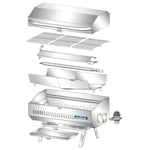 Built for life aboard your boat, the Magma Products ChefsMate Gas Grill delivers the grilling performance of a grill twice its size and cost. Unlike most grills, this one has been wind tested for premium heat distribution in all kinds of weather conditions. Thanks to its turbo burner design, it premixes air and fuel for a super-consistent hot blue flame. This burner delivers up to 11,200 BTUs of grilling power. Its primary cooking grate measures 18"L x 9"W, which is estimated to be able to serve 4 to 6 people with ease.