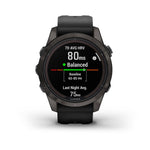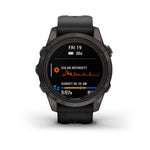 The Garmin fenix 7S Pro Sapphire Solar Multisport GPS Smartwatch goes strong every day of the week to keep you performing at your best. Styled for smaller-sized wrists, this fenix 7S Pro has a Power Sapphire solar-charging lens to extend battery life to power through your athletic and outdoor challenges with fewer recharges. Get up to 14 days in smartwatch mode with solar charging in 3 hours of direct sunlight (50,000 lux) per day and up to 46 hours in GPS mode with solar charging (assumes continuous use for entire period in 50,000-lux conditions). Use trusted button controls or the touch-screen interface to access selections. Gain performance insights and metrics that help you manage your exertion and build stamina. Optimize recovery with 24/7 health and wellness monitoring of heart rate, respiration, stress, sleep and more (this device is intended to give an estimation of your activity and metrics; it is not a medical device). Outdoor navigation sensors combine with Garmin SatIQ and multi-band GNSS technologies to help guide you with a higher level of positioning accuracy, even in challenging environments. Plus, you'll have preloaded TopoActive maps and worldwide ski and golf maps right on your wrist. Track the details of every ride with mountain biking metrics plus specialized Grit and Flow measurements that rate trail difficulty and how smoothly you descend, giving you a score to beat next time. View advanced training metrics that include running dynamics, heat- and altitude-adjusted VO2 max, trail running adjustment, recovery advisor, and more. See how much power you're applying to the trail or the road so you can manage your effort and fine-tune your training. From the moment you wake up, get a readiness score based on your sleep quality, recovery, training load and more, so you can determine whether it's a good day to go hard, or take it easy. To complement your tamer days, connected features include smart notifications when connected to a compatible smartphone, music storage, and Garmin Pay contactless payments in supported countries and payment networks. Updated, ultra-tough athletic design features a bright 1.2" solar-charged display and case tested to U.S. military standards for thermal, shock and water resistance. Built-in Wi-Fi connectivity for easy updates. Garmin fenix 7S Pro Sapphire Solar smartwatch includes USB-C charging/data cable. Case size: 42mm.