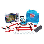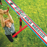 Are you Ninja ready? Show off your American Ninja Warrior skills with our versatile American Ninja Warrior Ninjaline. This outdoor toy includes a 34’ line with 6 hanging obstacles and has 11 pockets so you can add more to customize your ninja experience (sold separately). The course is designed to create a variety of obstacle scenarios that are great for building strength, agility, and confidence. Backyard games have never been this fun! Easy to set up. You only need 2 strong trees & you can create an instant playground! The set consists of a 34' super durable Ninja Line with 6 included obstacles along with a reinforced steel ratchet with comfort rubberized grip, 6' ratchet line & cover.The line has 11 pockets where you add the obstacles so you can add more and customize your Ninja experience. 6 included obstacles are 1 T-bar, 2 gym rings with rubberized comfort grips, 2 heavy weight monkey bars, & 1 monkey knot. Customizable! This kit includes 6 obstacles already but you can add to your Ninja line with a large selection on American Ninja Warrior accessories such as ladders and climbing ropes (sold separately). As your Ninja gets stronger, rearrange the obstacles, add more difficult obstacles or space them further apart. Includes an American Ninja Warrior carrying bag that stores the complete kit so you can take it anywhere. Fun for ages 5-99! Weight limit is 250 lbs. Great for Ninja birthday parties, family gatherings, or just everyday fun. The Ninja line is sure to be the hit of the neighborhood! Get kids of all ages outside and playing, the ninja line will provide years of enjoyment. Since it is changeable as skill sets develop, you will never outgrow or become bored with it! Less expensive & longer enjoyment period then a standard swing set. Perfect to use alone or with the ANW Competition or Obstacle Course Kits.