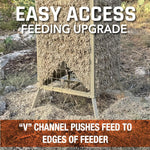 The Outcast Outdoors Cottonseed Feeder makes it easy to bring deer to your stand or keep your cattle fed. Featuring a 350-lb. cottonseed capacity, this deer feeder can also feed an alfalfa bale, giving it the versatility to fit your needs all year long. Its heavy-duty steel construction includes stainless steel hardware, and the V-channel design uses gravity to push feed to the edges. 4 feet on the base have integrated holes that make it easy to stake down, and its low-profile design means you can fill it without climbing a ladder. 33.46"L x 33.46"W x 56.25"H.