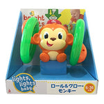 When we say Baby will love monkeying around with this toy - we mean it. The Bright Starts Roll and Glow Monkey rolls around the room with light-up wheels and frolicking music. Baby can chase and retrieve and start the fun again. Press the top of monkey's hat to get the fun started. What's more fun than a barrel of monkeys? This little monkey that rolls and flashes will get baby moving and laughing.