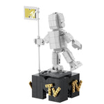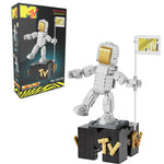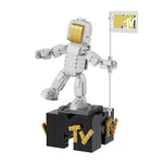 Experience the epitome of pop culture with the Brickcraft MTV Moon Person Brick Building Kit, perfect for ages 16+. Embrace the nostalgia as you construct the iconic MTV Moon Person, adorned with metallic gold finished parts and standing on a 4-sided MTV Logo base featuring a lunar surface floor. The dynamic pose options, facilitated by movable joints, add a personal touch, while the user-friendly instructions promise a relaxed building experience. Compatible with other leading brick brands. Once built, showcase your MTV Moon Person creation proudly, whether it's on a shelf, desk, or in a dedicated display area. This Brickcraft set isn't just a building project, it's a timeless tribute to the music era, a collectible showcase for all generations, embodying the everlasting spirit of music and pop culture. Extend your MTV-themed display with other Brickcraft sets like the MTV Cassette and Boom Box (sold separately). This collectible display model measures 10.25 in. (26 cm) high and 4.25 in. (10.16 cm) wide. Includes 510 pieces.
