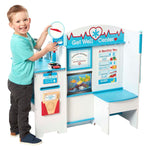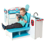 "Mom and Dad, you don't look so well." Your kids will immediately book you for an appointment at their very own medical office, the Melissa & Doug Get Well Doctor Activity Center. This multi-sided play unit crafted from wood has everything kids need to role play visits to the doctor's office where they can pretend to be the doctor, patient, nurse or receptionist. Role playing in the Get Well Center alleviates kids fears about doctor's visits. The waiting area includes a seat, clock, and fun changeable artwork. Kids can sign in and check out with a credit card reader and card, fill out a reusable patient file, and take appointments using the wood play phone. There's also a wash sink, X-ray display, blood-pressure monitor, scale, height ruler, and eye chart. Easy assembly requires Phillips-head screwdriver. 35.5"W x 37.25"H x 21.25"D. Wt: 68.25 lbs.