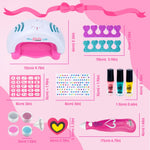 - Complete Nail Art Set: Includes nail dryer, toe separators, multiple polishes, glitter dust, nail file, sticky gems, and stencils to provide all tools needed for creative nail designs.