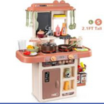 Play Kitchen Set for Kids: Includes electronic play stove, play sink with running water, all kinds of play food and utensils and other kitchen accessories. Besides, there are several various storage space for store kitchen items.