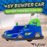 Flybar Kid Trax 6V Bumper Car Ride-On Toy, Blue, 360 Spin, LED Lights, Soft Foam Bumpers, Safety Seat Belt