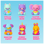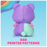 The Swisheez Teddy Bear stuffed animal captures the essence of retro style with its bright neon colors and unique patterns inspired by vintage fashion trends. Measuring 7 inches in a seated pose, this plush toy features a soft, squishy body made from smooth polyester fabric filled with polyester material for added comfort. Its purple-and-teal color scheme accented with pink flower prints and matching pink arms creates a playful and eye-catching design. Ideal for children ages 3 and up, this collectible plush adds a pop of color and personality to any room or play area. The short floppy arms and rounded body shape enhance its whimsical appeal, making it a delightful companion or decorative piece. Easy to care for with sponge cleaning recommended, the Swisheez Teddy Bear is packaged in a protective poly bag to maintain its quality during shipping. This plush toy is part of a larger collection featuring various characters, encouraging collectors to complete the set for even more retro-inspired fun.