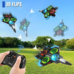 The JBeeCtrl RC Planes for Kids is a high-performance remote control airplane tailored for beginners and hobbyists alike. Modeled after a real fighter jet, it combines authentic design with advanced flight capabilities such as 360A aerial flips, gravity sensing, and stunt maneuvers including fast take-off, air circling, and air rolling. Constructed from lightweight yet durable EPP foam with enclosed propellers, it prioritizes safety while maintaining resilience against crashes. The 2.4GHz remote control system provides strong signal stability and supports multiplayer flying without interference, perfect for racing or formation flying with friends. Bright LED lights enhance visibility and add flair to nighttime flights. With simple controls requiring no assembly, this RC plane is ideal for children aged 5 to 16 who are passionate about aviation and outdoor fun.