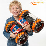 RC Car Truck, Keenstone 1:10 Giant Wheel Remote Control Toy Car with High-Speed Climbing and Colorful Gradient Lights with Music, Christmas Birthday Gift for Boys Kids, Orange.