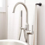 Finish the look of your bathtub with the Lentz Freestanding Tub Faucet. Its floor-mount design adds sophistication while an attached hand shower allows for convenience and functionality. Its single-lever control comes in a smooth texture to emit a sleek feel. Select your favorite finish so complete the look.