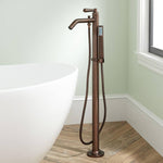 Freestanding tub faucet with hand spray - brass lever handle - ceramic disc cartridge - brass mounting plate with dec caps - Oil Rubbed Bronze