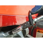 [This quick lock grease coupler also features a quick disconnect thumb lever for convenient hands free operation. With the HyperTough Pro Quick Release Coupler this worry is taken away with its unique 6pt contact design. It is designed for quick and convenient dis-engagement of the coupler from the grease/zerk fitting under pressure. Product is 22.5 in long and 1.5 in high.]