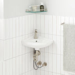 • Bring functionality and style to your bathroom with the Point Roberts Porcelain Corner Wall-Mount Sink.