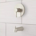 The simple design of the Rotunda Tub and Faucet Set will instantly upgrade any bathroom. The set includes a wall shower, tub filler with diverter, a metal lever handle and a pressure balance valve that provides consistent water pressure and temperature.