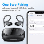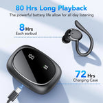 80H Longer Playtime & Smart Charging Case: Bluetooth earbuds come with a compact charging case, providing 90 hours of total listening time for the wireless earbuds. Each ear bud lasts all day and offers up to 8-10 hours playback on a single charge,the small case can provide an additional 7-9 full charges. The digital battery indicator on the outside allows you to easily check the remaining power of the case and earbuds charging status in real-time, enhancing your control over usage.
