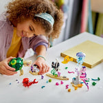 Boys and girls ages 8 years old and up can build, play with and display this colorful LEGO Creator Sea Animals (31158) 3 in 1 building set. It features 2 fish, a turtle, a jellyfish and a seahorse toy displayed on transparent rods as part of a seafloor stand adorned with sea plants, plus a red crab figure. The sea creature toys can swap positions on the stand, which can be straightened or angled. LEGO fans can choose from 3 different buildable underwater scenes with this 3 in 1 toy playset and adorn them with a variety of sea animal toys from a turtle to fish to an octopus. They can build a collection of 6 sea animals with a seafloor stand, rebuild it into an octopus and squid next to a bubbling piece of volcanic rock, or 2 fish gliding around colorful sea plants. LEGO Creator 3 in 1 toys make great birthday gift ideas for kids, with 3 different models to create in every box. Kids will be excited to build, rebuild and build again. The same set can be purchased 3 times so kids can enjoy bigger adventures and connect and play with all 3 models at the same time. Contains 421 pieces.