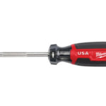 [The Milwaukee #1 ECX 4 in. Cushion Grip Screwdrivers (USA) are manufactured to give the professional the best-fitting screwdriver with max grip. These screwdriver tips are custom machined to deliver a precise fit and reduce stripping during demanding fastening applications. For added confidence, the tips are laser etched to increase the gripping surface. Manufactured with high-strength boron-infused steel for increased hardness, our screwdrivers stand up to the demands of the site with ultimate durability and life. Providing increased versatility, select screwdrivers include a wrench-ready bolster for added torque and a knurled shank for precision control. Quick identification markings on the handle make it easy to identify screwdriver tip size, including Phillips, cabinet, ECX, slotted, and square. The demolition screwdrivers also include a hammer-ready strike cap. These screwdrivers range in shank sizes from 3-inch to 10-inch. Milwaukee Cushion Grip Screwdrivers (USA) are made in the USA with best-in-class]