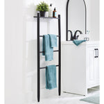For space-saving hanging storage of towels and other linens in a bathroom, bedroom or anywhere with limited room, the Better Homes & Gardens Springwood Towel Ladder can't be beat. The ladder leans against a wall and provides 4 tiers of storage (3 towel bars and a flat shelf). The shelf on the unit's top is perfect for toiletries, everyday essentials and decorative display items. Made of real acacia wood, with a striking black finish, the towel ladder will look great in any room setting. Assembly is easy.