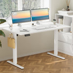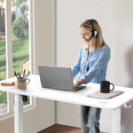 The CONCETTA Electric Adjustable Height Standing Desk offers a versatile and ergonomic workspace solution designed to enhance comfort and productivity. Measuring 55 x 24 inches, this white desk features smooth electric height adjustment, allowing users to effortlessly switch between sitting and standing positions. Its sturdy wood top and metal T-shaped base provide durability and stability, while user-friendly controls include programmable height settings for personalized comfort. Ideal for home or office use, this desk promotes better posture, reduces strain, and supports a healthier work routine by encouraging movement throughout the day.