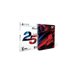 25th Anniversary Edition** includes: PS5 Game Disc with PS4 Game Entitlement, Exclusive SteelBook case, 1,100,000 CR (in-game credit), Toyota GR Yaris with country-specific livery, 30 manufacturer & partner PSN Avatars, The Music of Gran Turismo Official Soundtrack Three-car pack, including: MAZDA RX-VISION GT3 CONCEPT Stealth Model, Porsche 917 LIVING LEGEND, Toyota Supra GT500 97 (Castrol TOMS)