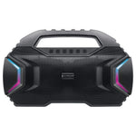 Sporting dual 4", 15W drivers and a passive subwoofer, the ECOXGEAR EcoRoam 100 Portable Bluetooth Speaker puts massive sound in a surprisingly compact size. This ECOXGEAR speaker adds party lights with multiple lighting modes to make it the centerpiece of any outdoor gathering, while wide-ranging functionality lets you get the most out of this portable speaker and your occasions. Bluetooth wireless connectivity lets you stream audio from any compatible, connected device, while aux-in and a built-in SD card reader allow countless more audio attachment possibilities. TWS wireless pairing lets you connect other EcoRoam 100 speakers (not included) to pump up the audio even further. A built-in speakerphone allows handsfree phone use, the IPX5 water-resistant rating ensures this portable wireless speaker can withstand spray and splash
