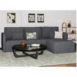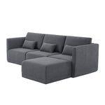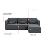 Includes left wedge, armless chair, right wedge, ottoman and 3 small gray accent pillows