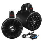 Take powerful audio off-road, on the water, or anywhere a boombox couldn't handle, with the Boss Audio Systems Power Pod Rugged 4" Bluetooth® ATV/UTV/Waketower Speaker Pair with Built-In 500W 2-Channel Class D Amp. Each 4" poly cone speaker boasts a 1" weatherproof tweeter, along with this Boss audio system's 500W max built-in Class D 2-channel amplifier thumping, crisp, adventure-proof sound. Bluetooth wireless connectivity lets you stream your favorite audio source, while IPX5 water resistance shields this adventure-grade Boss speaker set from spray and splash. Includes wired remote. Adjustable clamps fit bars with 1"–2" dia. Perfect for ATVs, UTV cages, waketowers, and more.