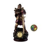 This exquisite sculpture from The Bradford Exchange's Lord's Strength Collection captures the essence of faith through the depiction of a powerful knight clad in biblically-inspired armor, reflecting the Armor of God described in Ephesians 6:10-18. Meticulously handcrafted in cold-cast bronze and enhanced with hand-painted golden highlights, each piece is a unique collectible that embodies spiritual strength and protection. The knight stands poised for battle atop a rugged stone-look base, which features a removable Challenge Coin made from real metal, plated in 24K gold, and finished with hand-applied enamel for added elegance. Measuring approximately 12 inches tall, this sculpture is perfectly sized for display in any home or office setting. It comes with a Certificate of Authenticity, underscoring its collectible value. This piece is ideal for those seeking a meaningful and uplifting symbol of faith, making it a treasured addition to any religious art collection or a thoughtful gift for loved ones.