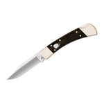 The Buck Knives Auto Folding Knife is a modern take on the iconic Buck 110 Hunter, combining traditional craftsmanship with automatic deployment technology. Crafted with a 3.75-inch blade made from 420HC stainless steel, it delivers excellent edge retention and corrosion resistance. The clip point blade shape enhances precision cutting and versatility for various outdoor tasks. The handle is finished with Crelicam ebony hardwood and brass bolsters, providing both durability and a classic aesthetic. This folding knife features a push-button mechanism for rapid blade deployment, ensuring quick access when needed. Included is a high-quality leather sheath for secure storage and transport. Perfect for collectors and outdoor users seeking a reliable, stylish automatic knife.