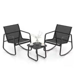 Costway HCST00573 3-Piece Metal Outdoor Bistro Patio Rocking Set 2 Rocking Bistro Chairs and Glass-Top Table