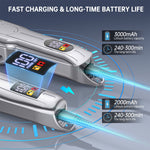 The CshidWorld ZCC133SL Professional Hair Clippers and Beard Trimmer Set is designed to deliver precise, efficient grooming with professional-grade performance. Powered by a heavy-duty 7000 RPM rotary motor, it cuts through thick hair effortlessly while maintaining low noise levels, making it suitable for use around children and pets. The clipper features precision ground 440C stainless steel blades that are self-sharpening and durable, ensuring long-lasting sharpness without pulling or snagging hair. This cordless grooming kit includes 13 guide combs ranging from 1mm to 25mm, allowing for versatile styling options from close trims to longer cuts. The zero-gap T-blade trimmer enables detailed edging and contouring for beards, sideburns, and necklines. A large LED display provides clear information on battery charge level, charging status, and lubrication reminders. The built-in 3000mAh battery supports up to 300 minutes of continuous cordless operation after a full three-hour charge, with quick-charge functionality offering 30 minutes of use after just 15 minutes of charging. Ergonomically crafted for comfortable handling, the clipper is easy to clean with a no-maintenance motor design that simplifies upkeep. This all-in-one grooming kit includes essential accessories such as a cutting comb, cape, cleaning brush, and USB charging cables, making it an excellent choice for personal or family grooming needs.