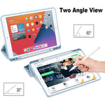Funbiz iPad10.2-TPU-PU-QL Case for Apple iPad 9th 8th 7th Generation 10.2 inch Case Cover with Pencil Holder, Light Blue