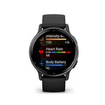 The Garmin vÃvoactive 5 GPS smartwatch combines sleek design with powerful health and fitness tracking features to support an active lifestyle. Its bright 1.2-inch AMOLED touchscreen delivers vivid colors and excellent visibility both indoors and outdoors. With up to 11 days of battery life in smartwatch mode, users can enjoy extended tracking without frequent recharging. The watch offers personalized Body Battery energy monitoring that analyzes activity, sleep, stress, and recovery data to help users understand their energy levels throughout the day. Advanced sleep coaching provides a sleep score along with tips and heart rate variability (HRV) insights to improve rest quality. Over 30 built-in sports apps cover a wide range of activities including walking, running, cycling, swimming, golf, HIIT, yoga, and more. The integrated GPS enables accurate outdoor activity tracking without needing a phone. An inclusive wheelchair mode tracks pushes instead of steps and includes specialized workouts for strength, cardio, HIIT, Pilates, yoga, and handcycling. Bluetooth connectivity ensures seamless syncing with Android and iOS smartphones for smart notifications and data management through the Garmin Connect app. The lightweight silicone band combined with a hybrid interface of touchscreen and buttons offers comfort and ease of use for daily wear. Designed for comprehensive health monitoring and fitness tracking, the vÃvoactive 5 is an all-in-one companion for managing wellness routines effectively.