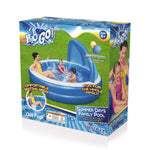 The spacious H2OGO! Summer Days Inflatable Pool provides safe fun for the whole family! Sit back and enjoy the outdoors under the giant UV Careful sunshade that protects a portion of the pool from the sun’s bright, harmful rays and keeps you cool. Plus, with a comfortable bench seat built-in, this pool offers the perfect place for summertime relaxation while the kids splash and play in the water. This inflatable pool sets up in minutes and also features an easy-to-use drain valve to release water, making it easy to take down and store when not in use. Summer after summer, turn your backyard into an oasis that’s perfect for the whole family with the H2OGO! Summer Days Inflatable Pool!